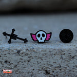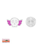 The Phantom Troupe & Feitan Stud Set are made from high-grade Stainless Steel. Features a coin and skull design. Coin stands 9mm tall & 2mm at its thickest & 9mm at its widest. Skull 8mm tall & 2mm at its thickest & 13mm at its widest