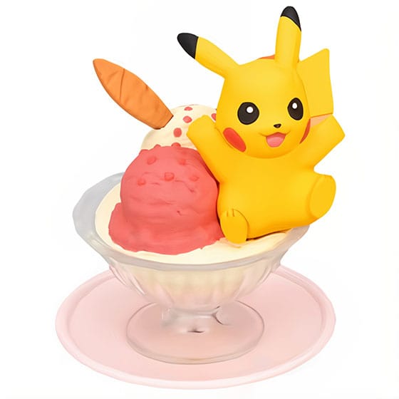 • Pikachu: The iconic Electric-type Pokémon enjoying a delightful dessert.