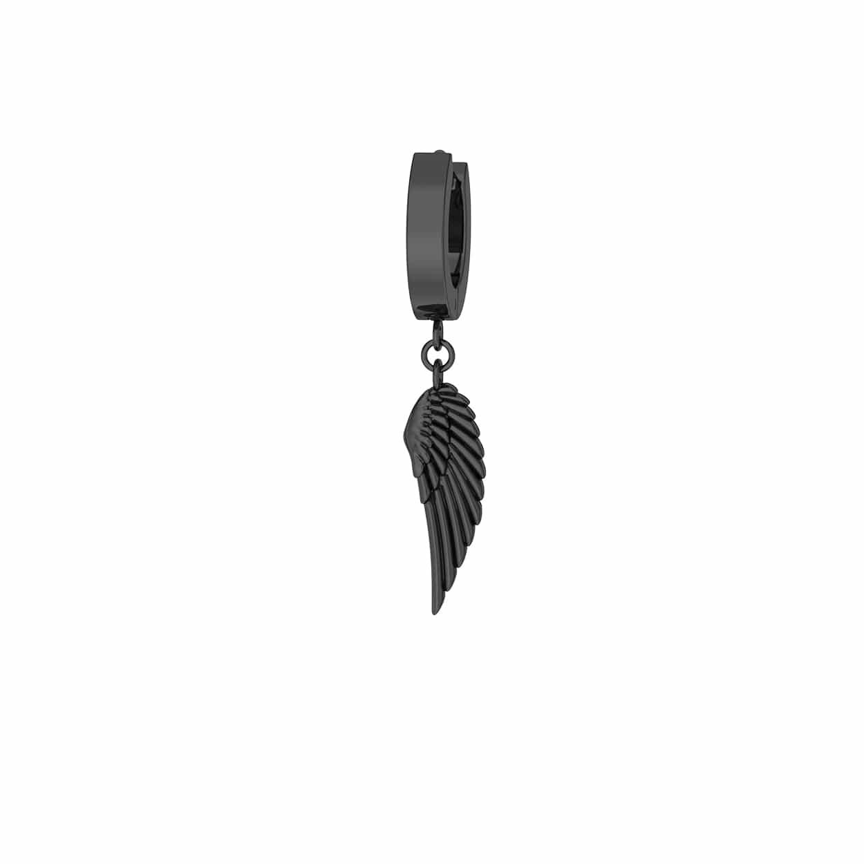 The Archangel Earring has a hinged hoop earring (20 GA) and is made from high-grade Stainless Steel. Features a 3D style wing pendant at approx. 3/4" tall.