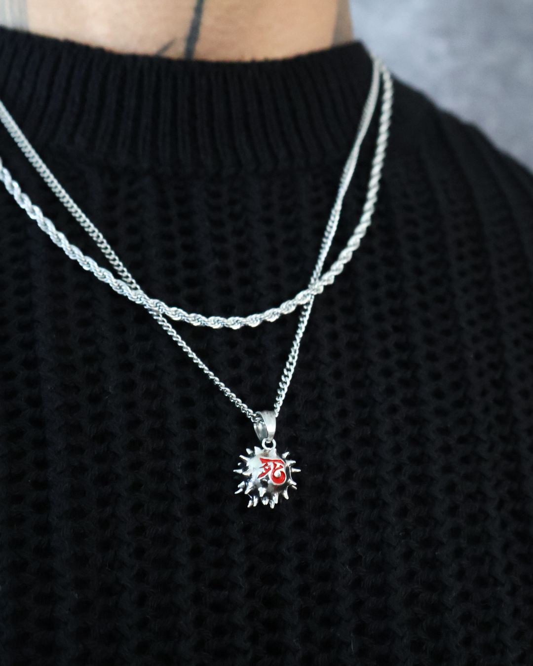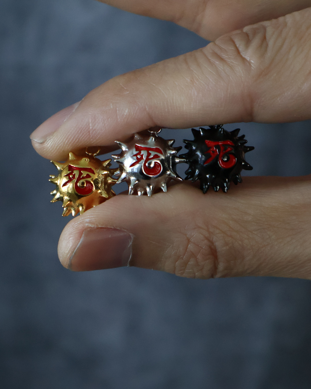 The Crush Card Virus Pendant features a 3D design and stands 29mm tall & 25mm at its thickest & 26 mm at its widest.