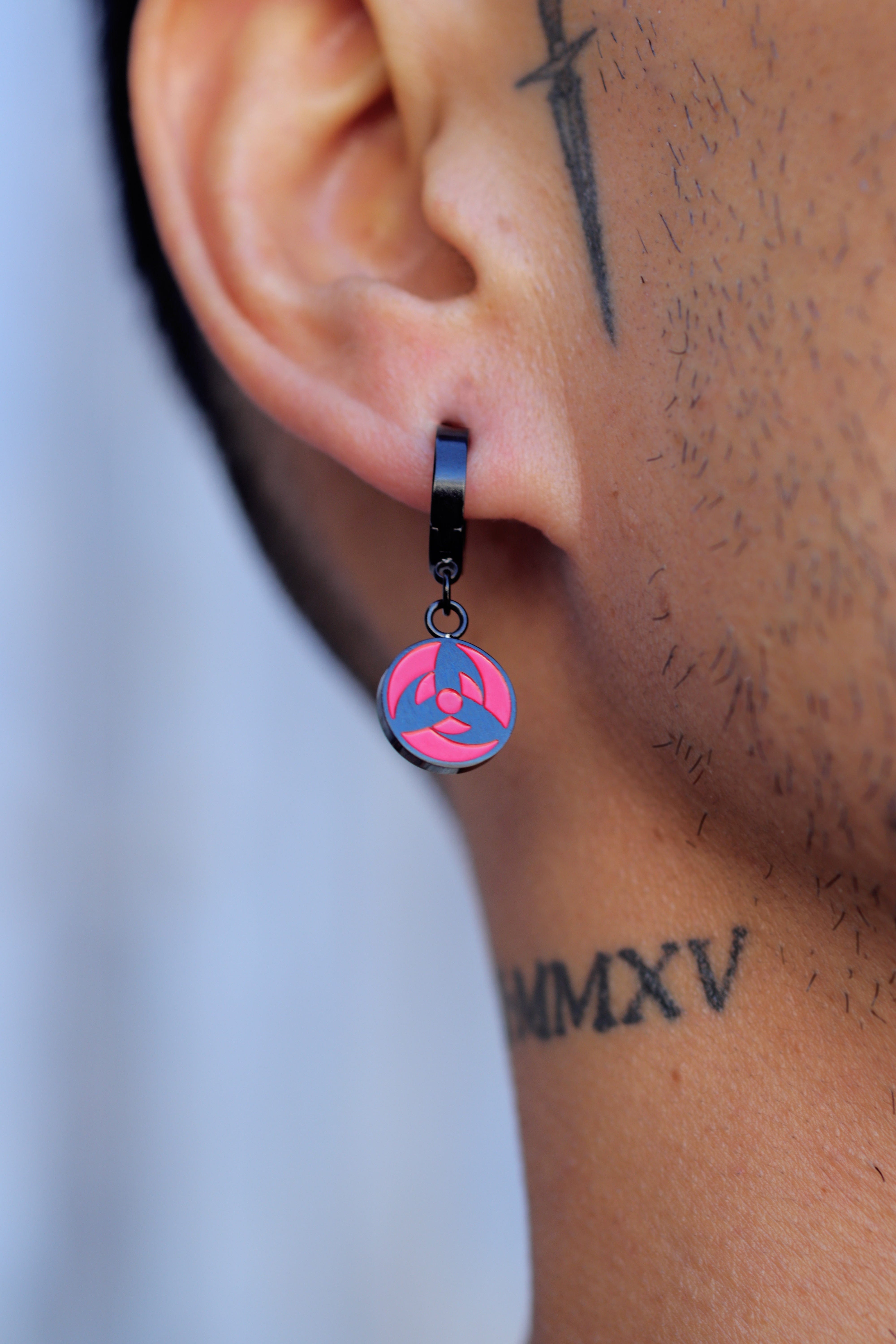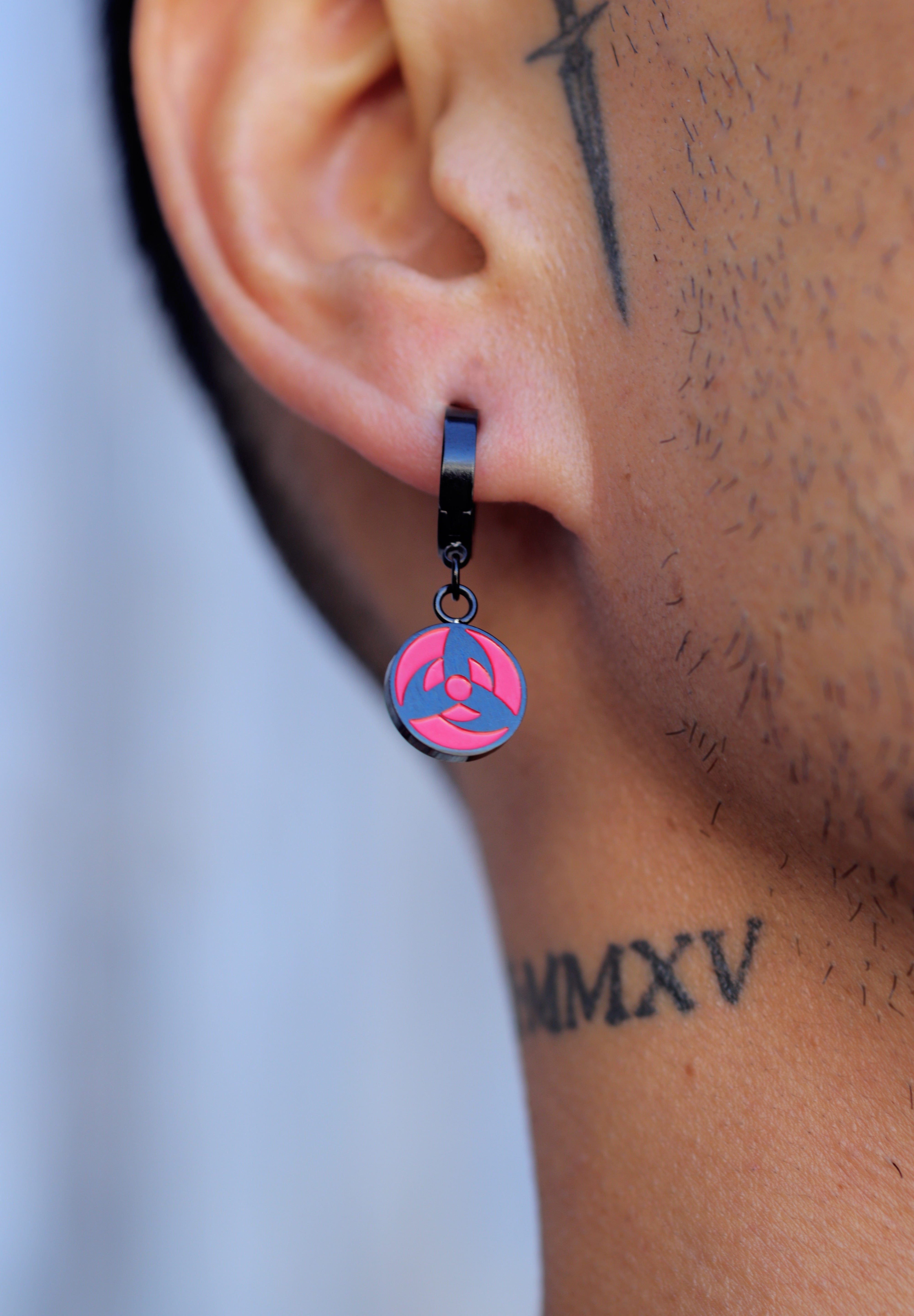 The Mangekyou Sharingan Earring features a circular design with a diameter of 12mm and a thickness of 2mm.