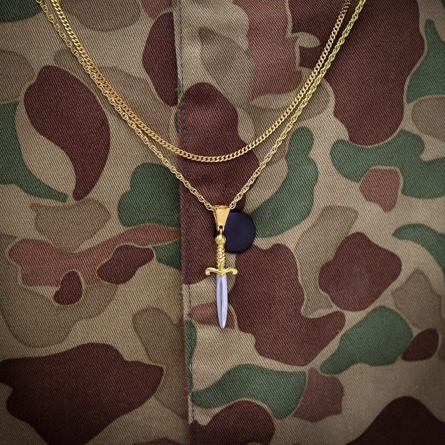 The Dagger Necklace comes with a Micro Curb style chain and the chain length of your choice! The pendant and chain are made from high-grade Stainless Steel.