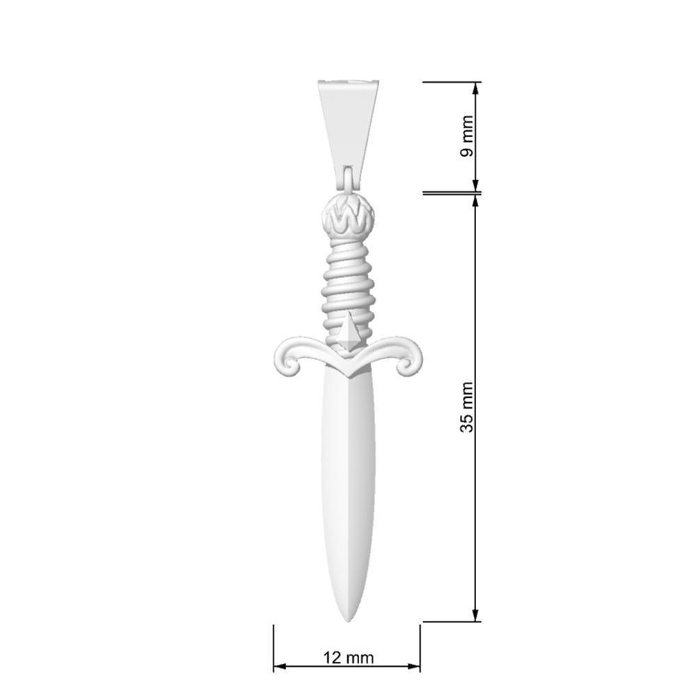 Features a dagger design and stands 1 1/4" tall & 1/4" thick & 1/2" wide.