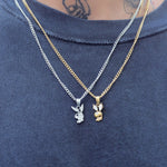 The Playboy Necklace Comes With A Micro Curb Style Chain And The Chain Length Of Your Choice! The Pendant And Chain Are Made From High-Grade Stainless Steel. Features A 3D Style Playboy Bunny That Stands 5/8" Tall & 1/2" Wide.