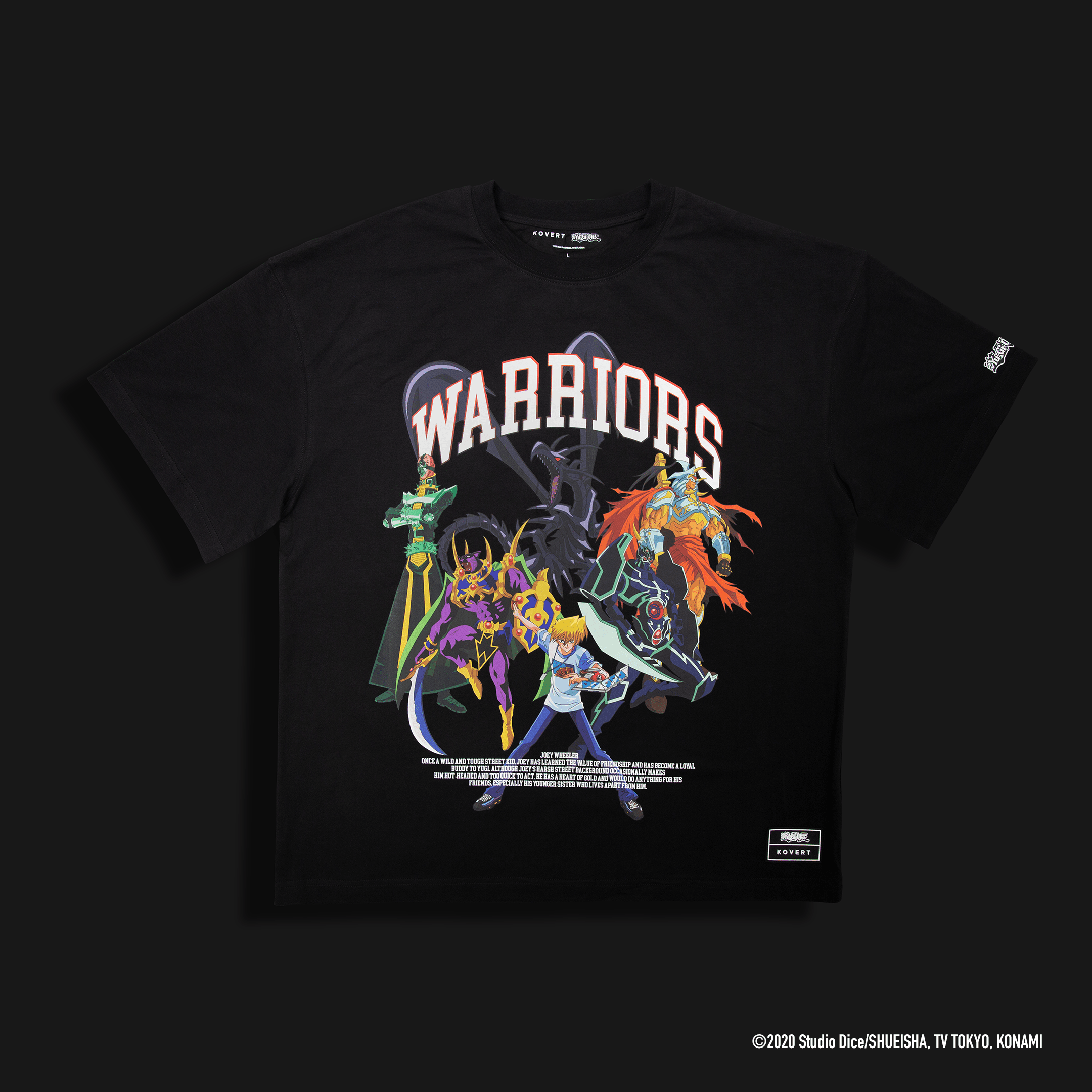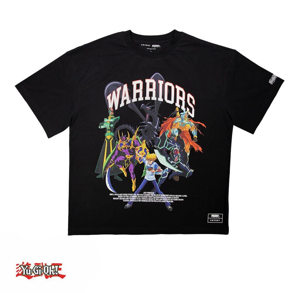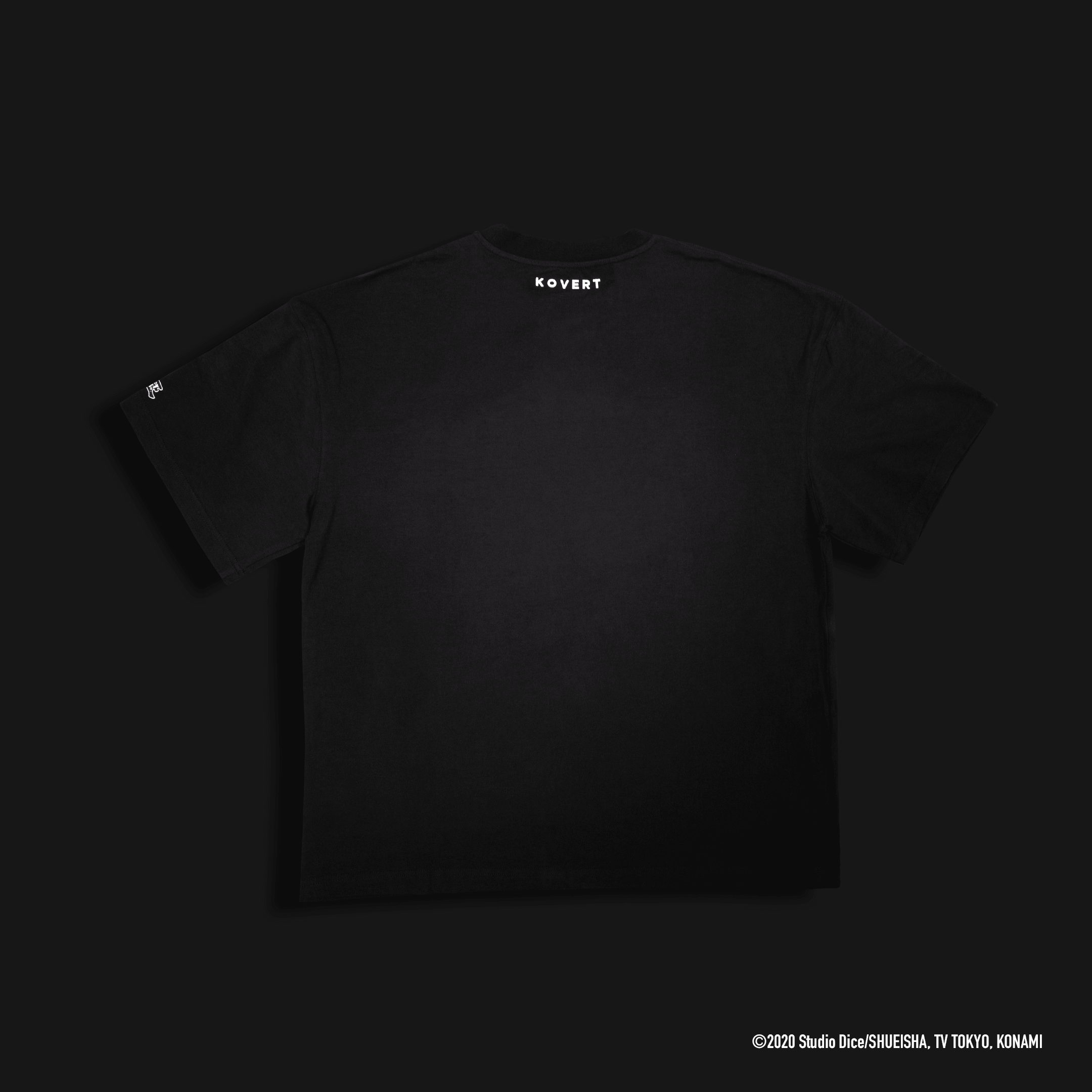 These t-shirts come in a cotton blend fabric with a straight hem in the oversized fit you know and love. The front features official artwork of Joey Wheeler and his due monsters (Jinzo, Red Eyes Black Dragon, Panther Warrior, Gearfried the Iron Knight and Gilford the Lightning) with overlay text in a print on the front with rubber labels and text on both the front and back.