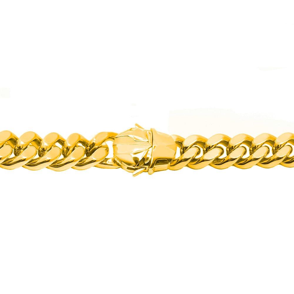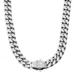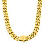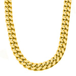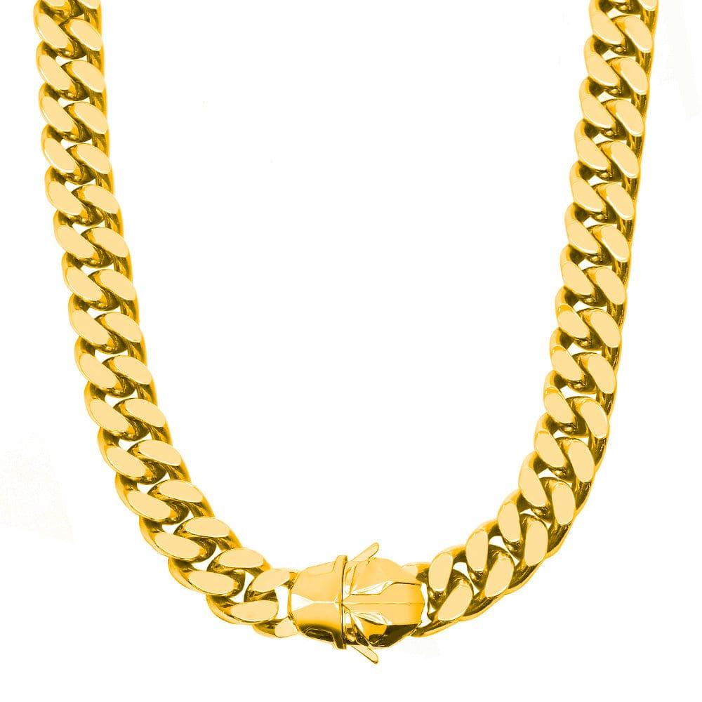 Features 16mm wide chunky curb links, a custom double trigger clasp, and finished with an Ion Bonding technique for long-lasting durability and shine.