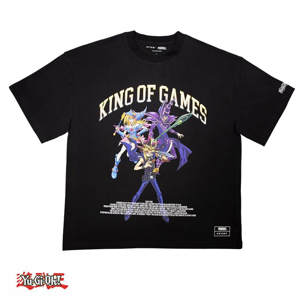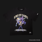 These t-shirts come in a cotton blend fabric with a straight hem in the oversized fit you know and love. The front features official artwork of Yami Yugi, Dark Magician and Dark Magician Girl with overlay text in a print on the front with rubber labels and text on both the front and back.