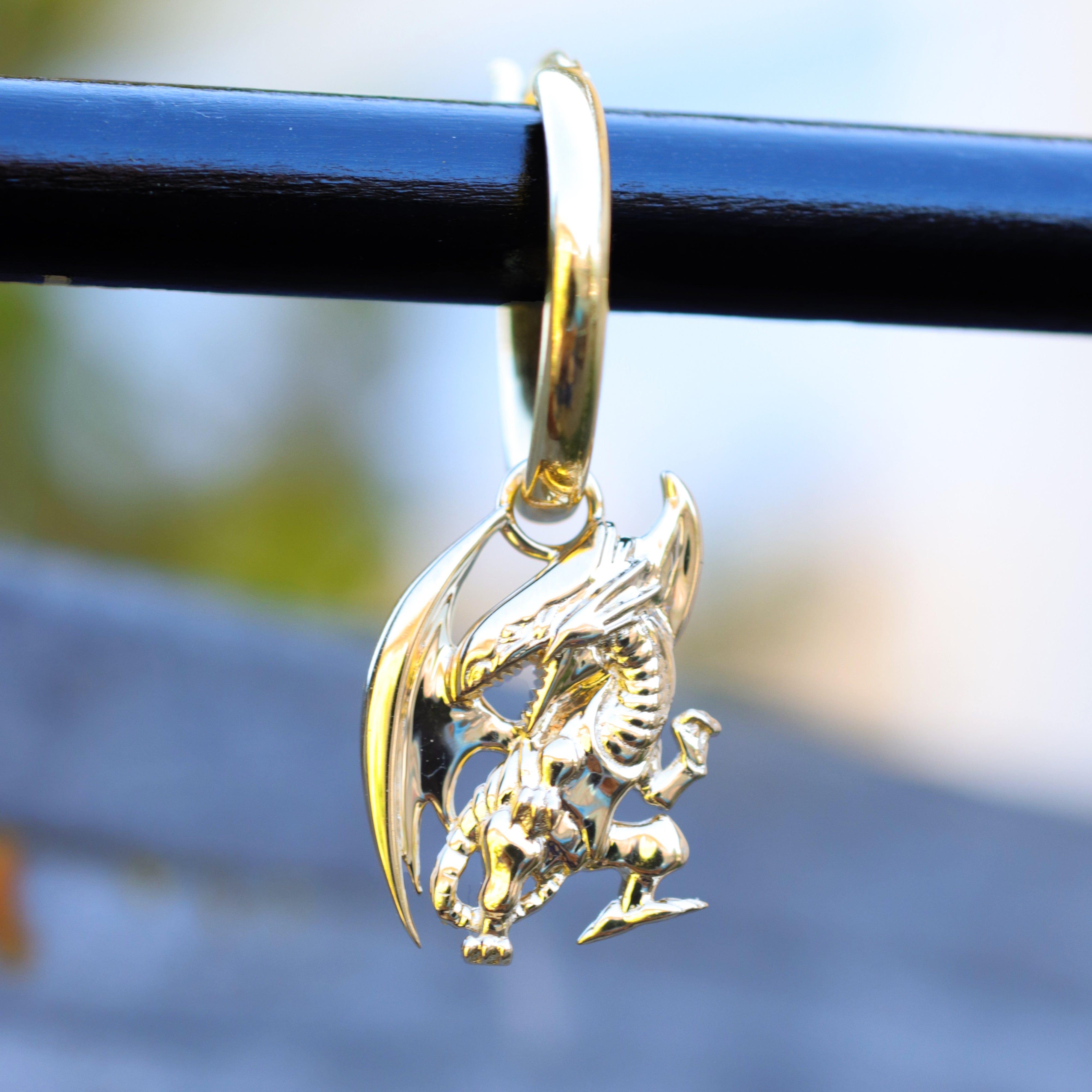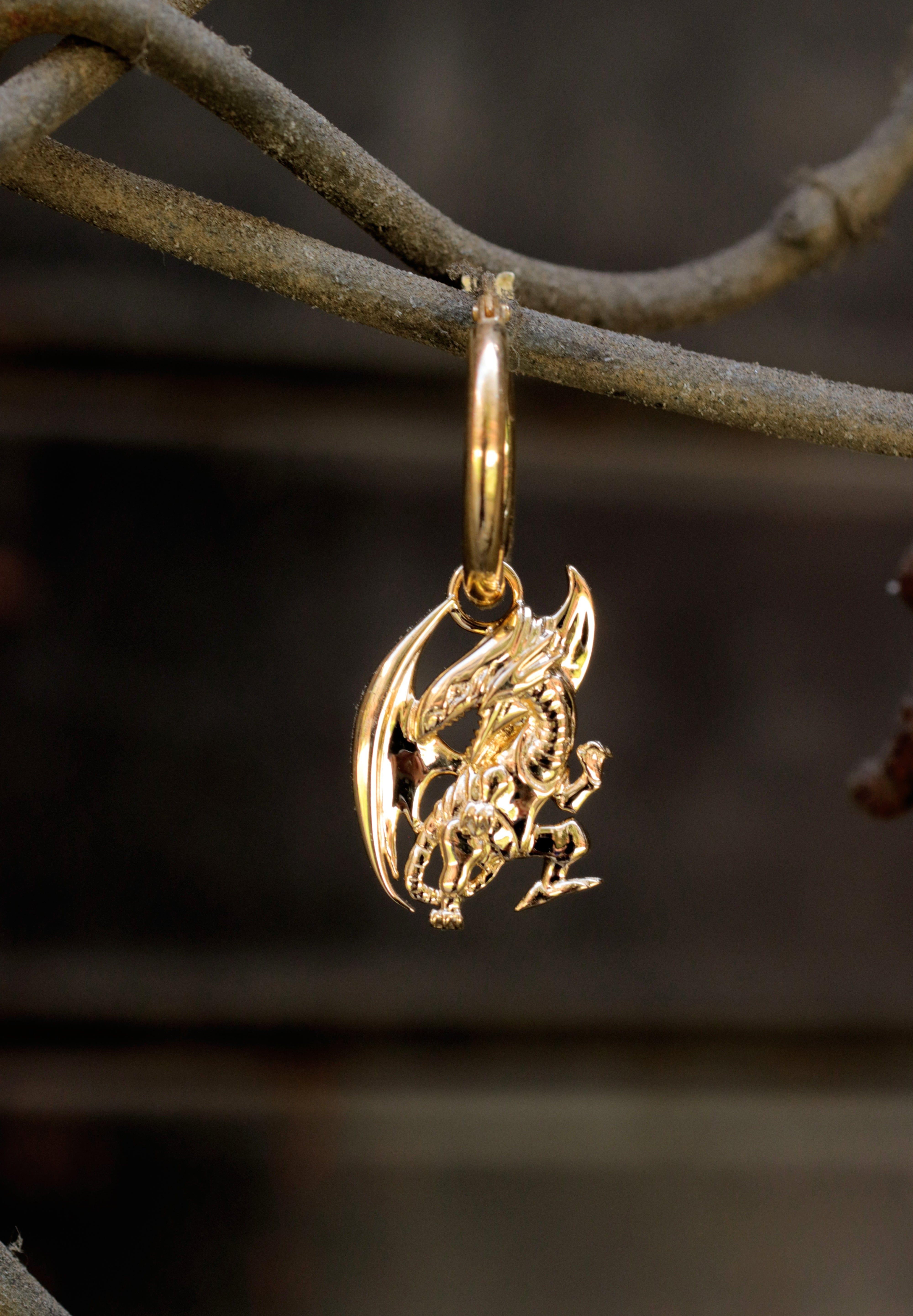 The Yu-Gi-Oh!™ Blue Eyes White Dragon Earring - 14kt gold and finished with an authenticity stamp. We guarantee 14kt Gold throughout and our craftsmanship.