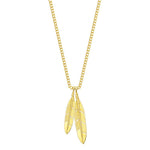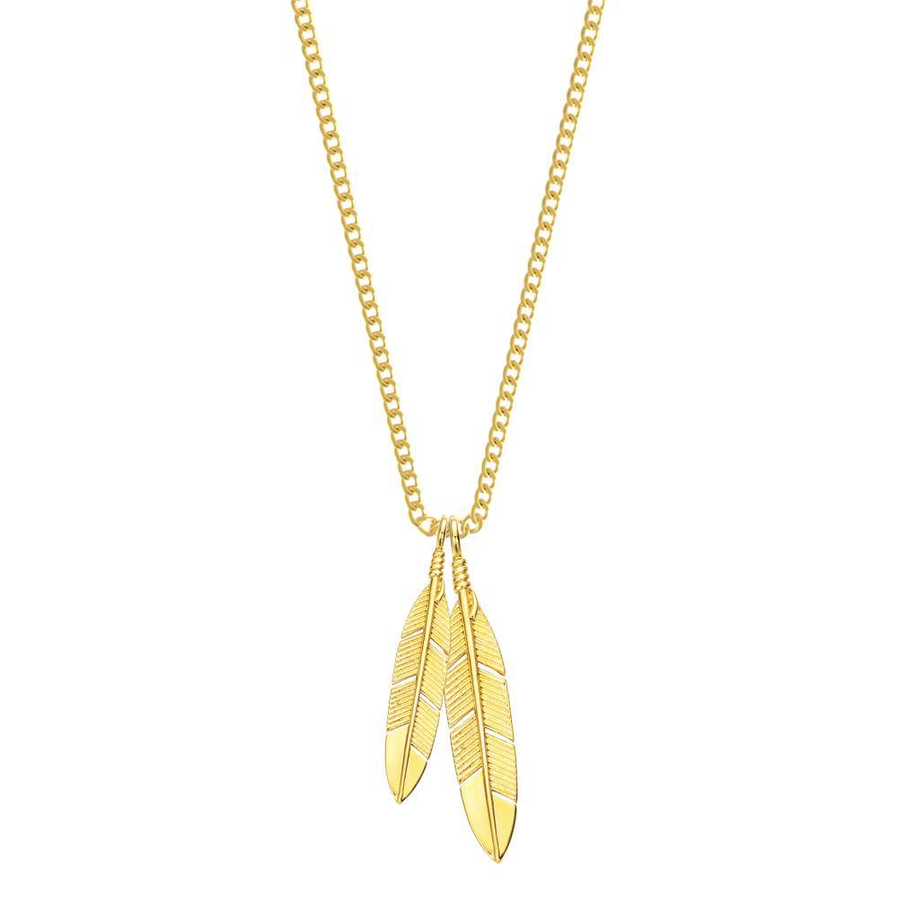 The Feather Necklace comes with a Micro Curb style chain and the chain length of your choice! Features two 3D style Feathers pendants with the larger standing at 1 1/2" tall, 1/16" thick & 1/4" wide and the smaller at 1 1/4" tall, 1/16" thick & 1/4" wide.
