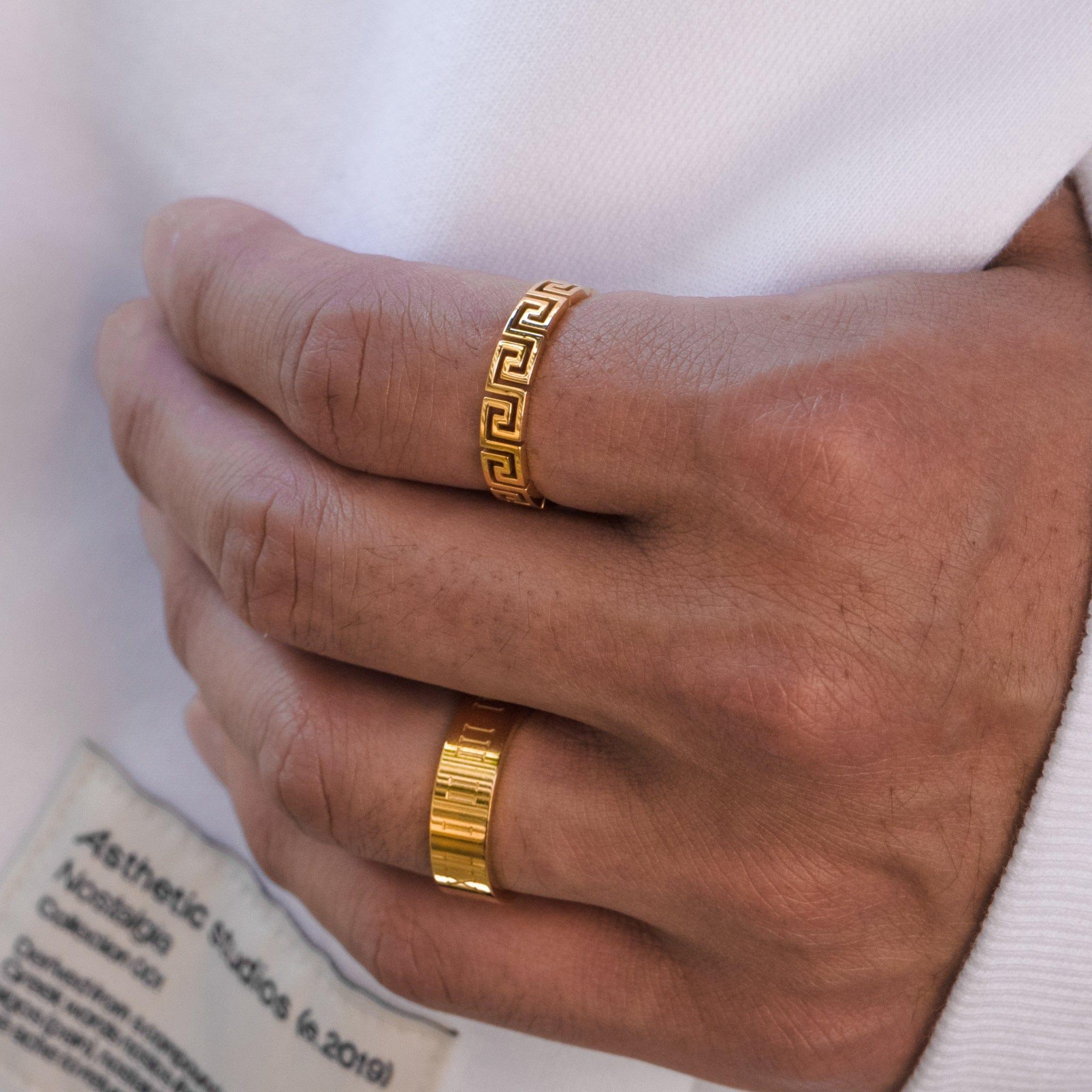Now heavier and more durable, The Greek Cut Out Ring is cast in high-grade Stainless Steel, featuring a cut-out design of the classic Greek maze pattern.