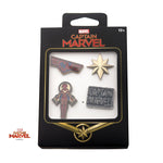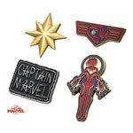 Captain Marvel Enamel Pin Set (4 piece). Licensed Jewelry Packaging Included.