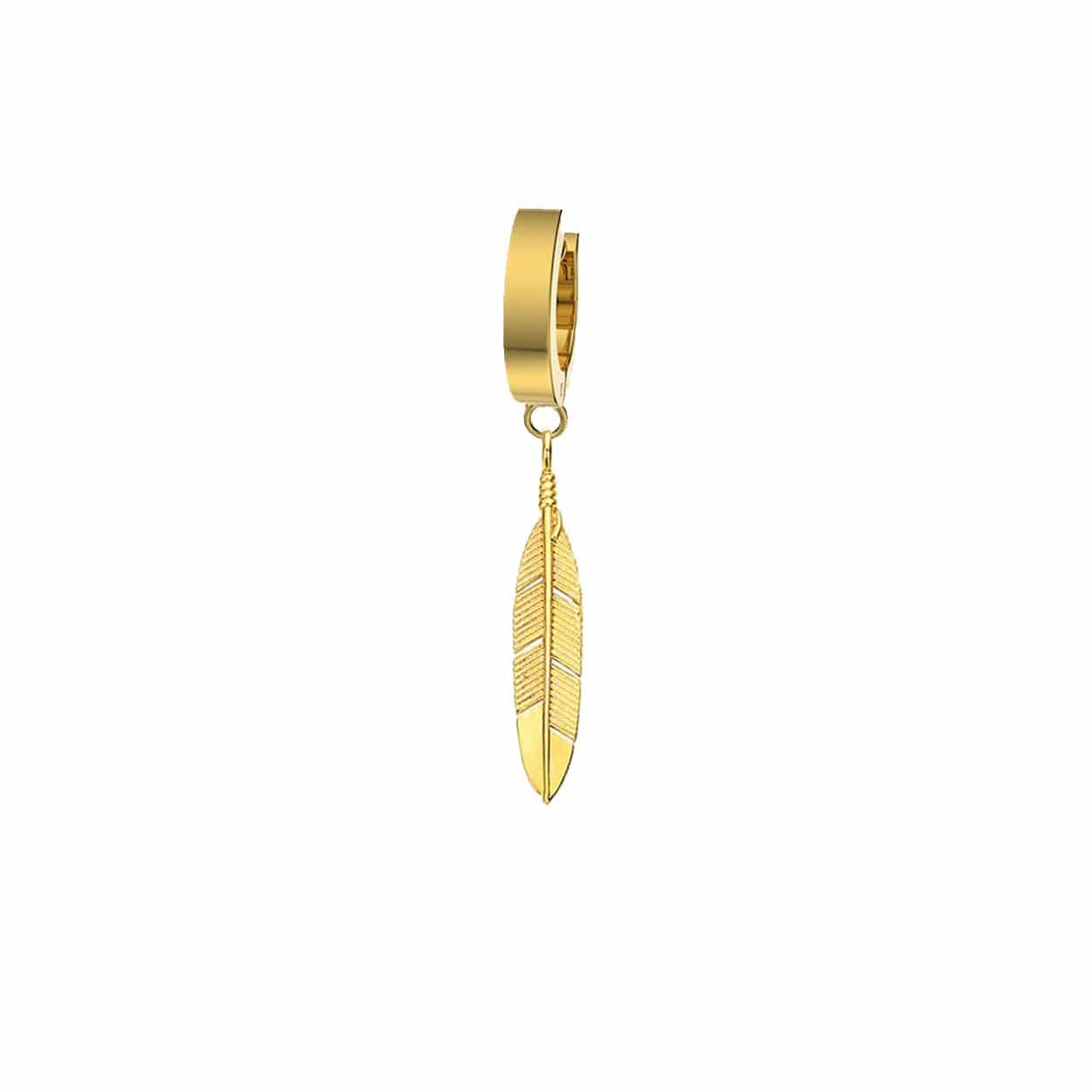 The Mister Pluma Earring – a symbol of untamed elegance and individuality. Crafted to perfection, this earring features a finely crafted feather design that captures the essence of nature's beauty. Suspended gracefully from a hinged hoop earring (20 GA) made from high-grade Stainless Steel. Features a 3D style feather design and stands 1 1/2" tall & 1/16" thick & 1/4" wide. Elevate your style and express your distinct personality with the captivating charm of the Mister Pluma Earring.
