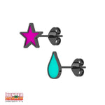 The Hisoka Star & Tear Stud Earrings are made from high-grade Stainless Steel. Features a star and tear design. Star stands 10mm tall & 2mm at its thickest & 10mm at its widest. Tear 9mm tall & 2mm at its thickest & 5mm at its widest