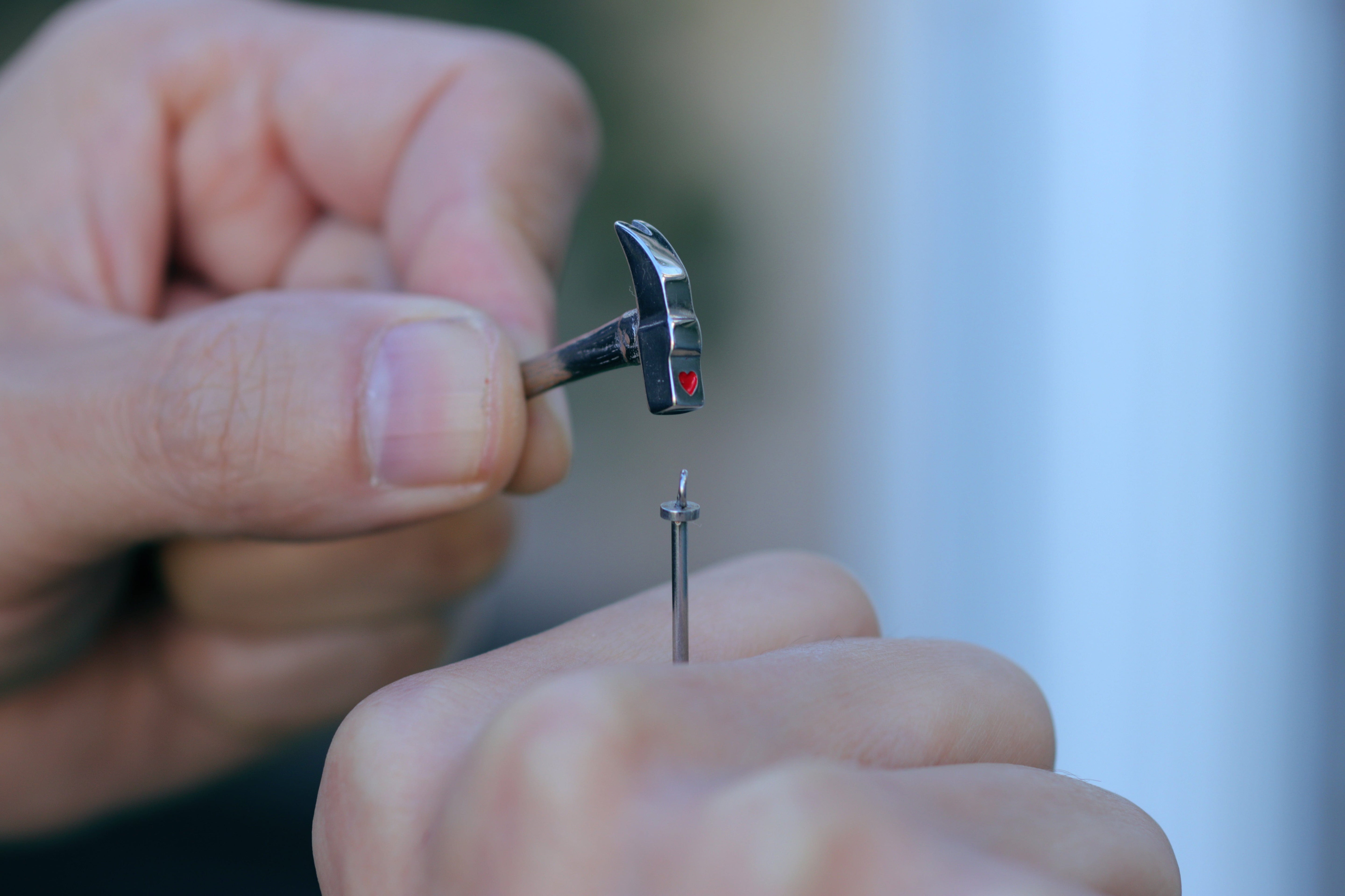 The Nobara's Hammer & Nail Pendant features a 3D hammer and nail design. The hammer stands 30mm tall & 4mm at its thickest & 4mm at its widest & the nails stand 11mm tall & 4mm at its thickest & 4mm at its widest.