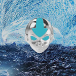 The Aang Ring is cast in high-grade Stainless Steel, featuring a two-tone finish and contains blue glows in the dark enamel.